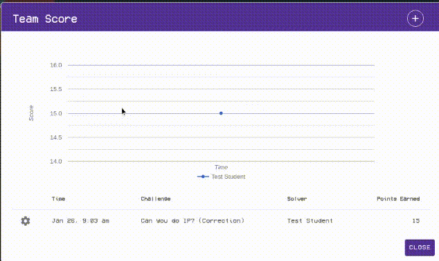 You will then be able to view which challenges have been solved by the team, the date and time of the challenge solve, and the team member who solved the challenge.